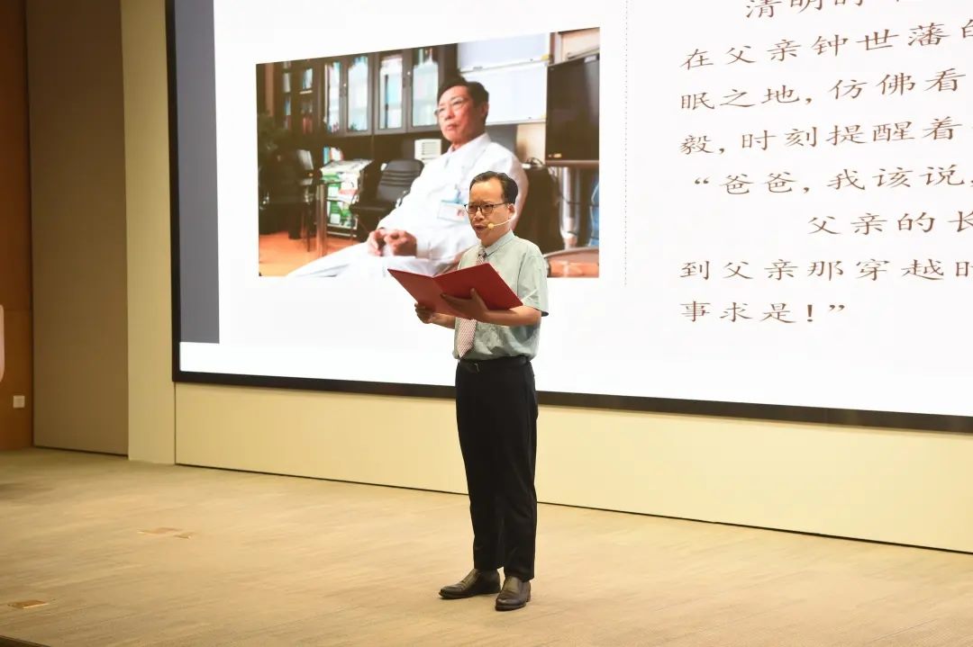 疫情防控斗争中,钟南山院士始终是一面旗帜,为广大医务工作者树立了标杆榜样。脑血管病医院主任医师段光明用深情诵读了《说,还是不说》,娓娓讲述了钟南山院士坚持真理、实事求是、尊重科学的故事。影音画面交相呼应、相得益彰,现场阵阵掌声经久不息。