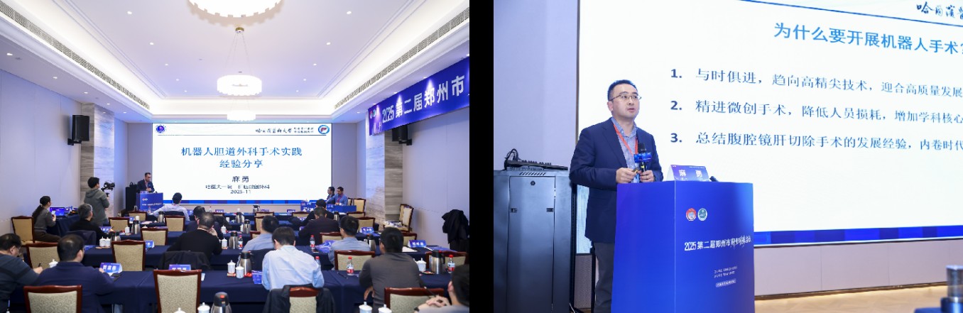 麻勇教授在《机器人手术在胆道外科的应用经验分享》报告中,系统阐述了机器人手术系统在胆道外科应用的技术优势与适应证选择,结合详实的病例资料重点分享了其在复杂胆道重建、肝门部病变切除等关键手术中的操作技巧与团队协作经验,并对该技术的未来发展方向提出了前瞻性思考。