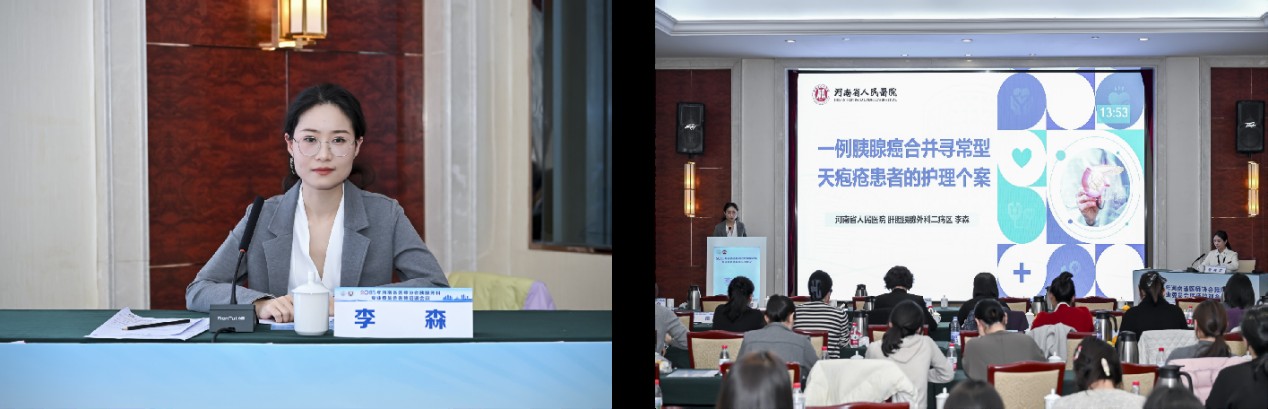 护理分会场第三部分“个案分享”环节在河南省人民医院管唯然教授温婉而富有洞察力的主持下拉开帷幕。本环节聚焦临床罕见与复杂病例,通过深度剖析展现护理实践的专业内涵。在管唯然教授引导下,河南省人民医院陈培培教授首先分享了《一例消化道出血伴下肢静脉血栓患者的个案护理》,呈现了在多重风险交织下如何实现精准抗凝与出血管理的平衡艺术;随后,李森教授带来了《一例胰腺癌合并寻常型天疱疮患者的护理》,通过这一罕见病例,展现了肿瘤专科护士在皮肤管理、疼痛控制和人文关怀中的专业价值。